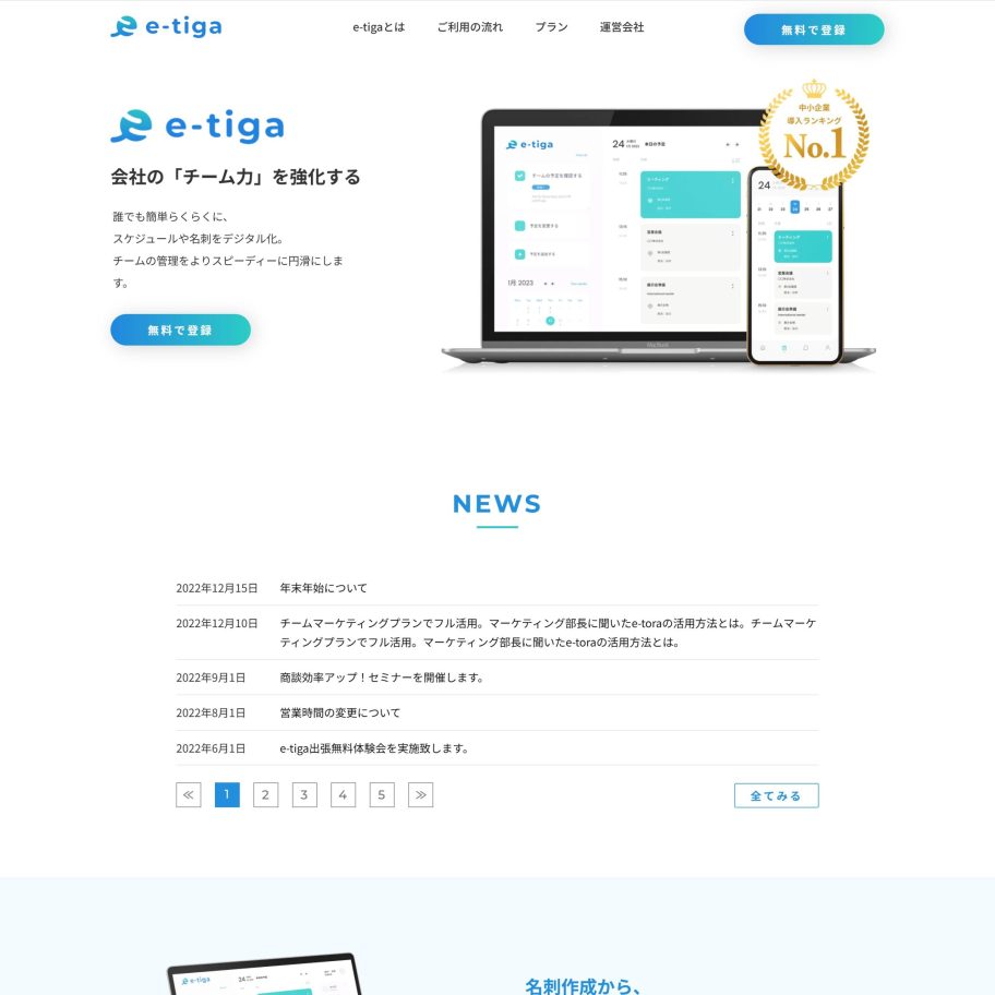 オンラインスクールの課題として、業務効率化ツール「e-tiga」のサービスサイトを実装しました。 提供されたデザインデータをもとに、HTML・CSS・JavaScript を使用して再現しました。