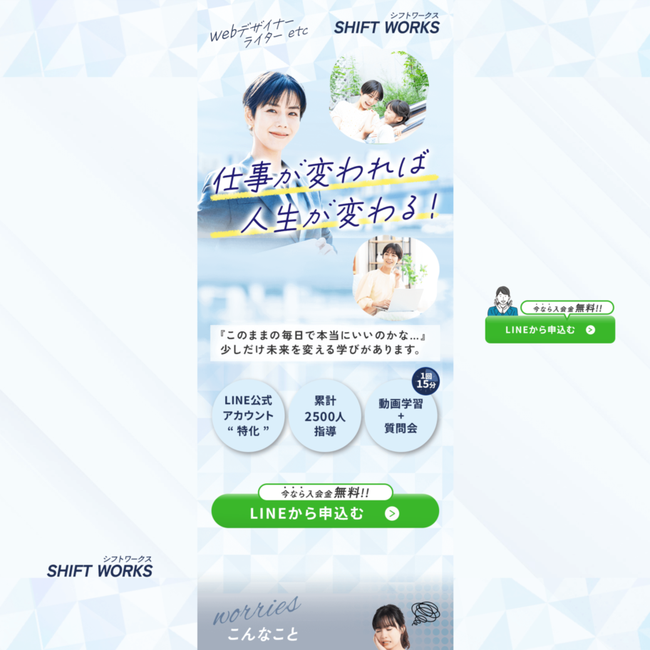 Y's works様のto C向けLPページのコーディングを担当させていただきました。 提供いただいたデザインデータをもとに、HTML・CSS・JavaScript を使用して再現しました。